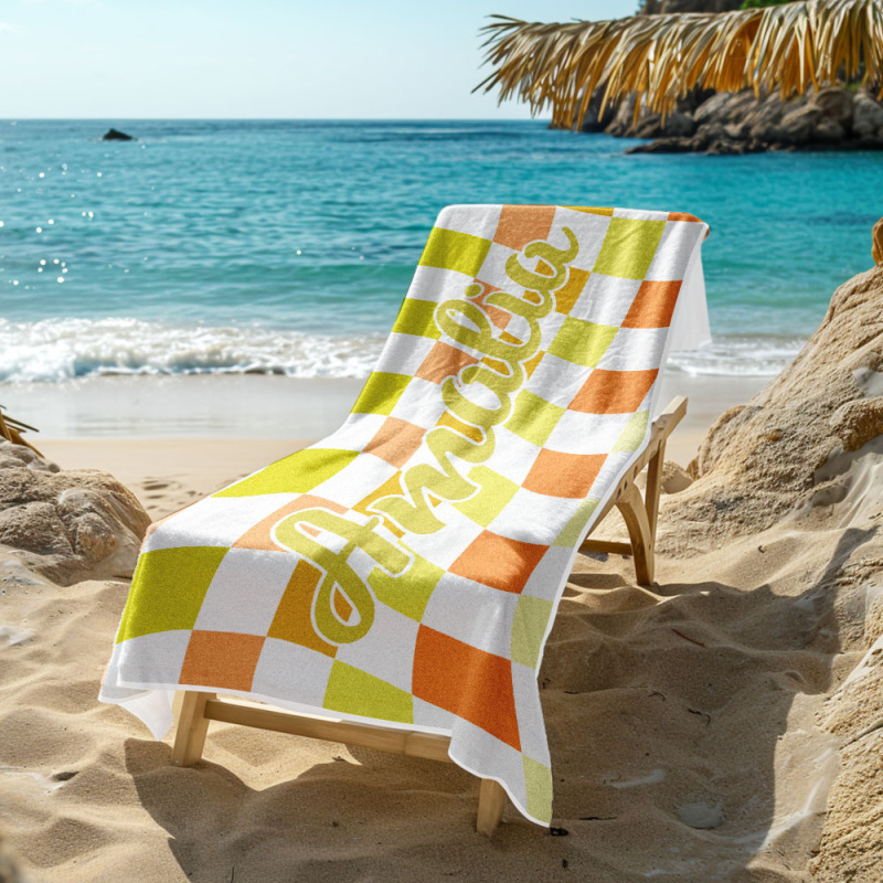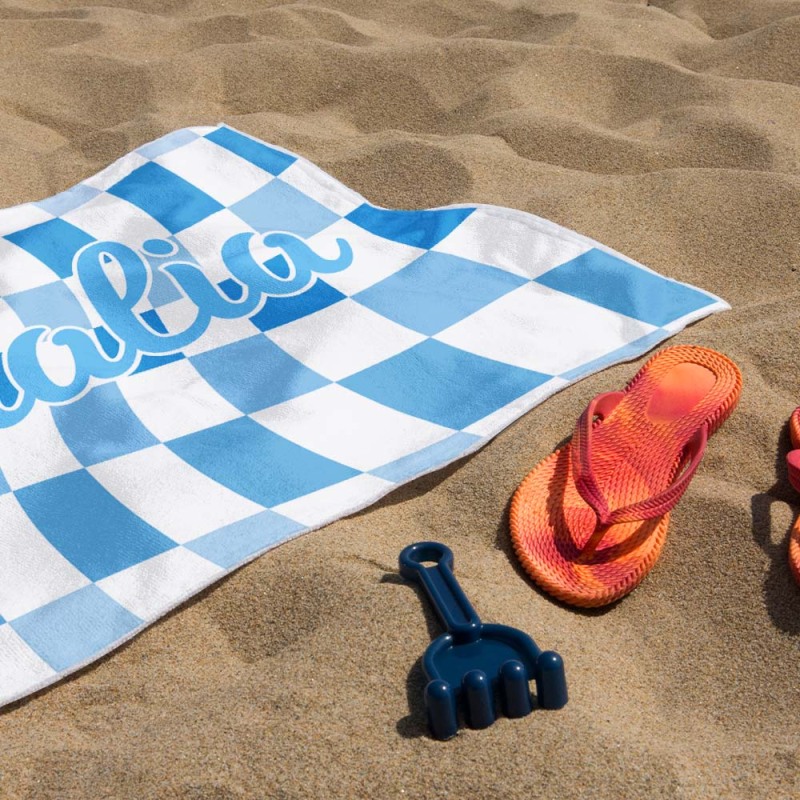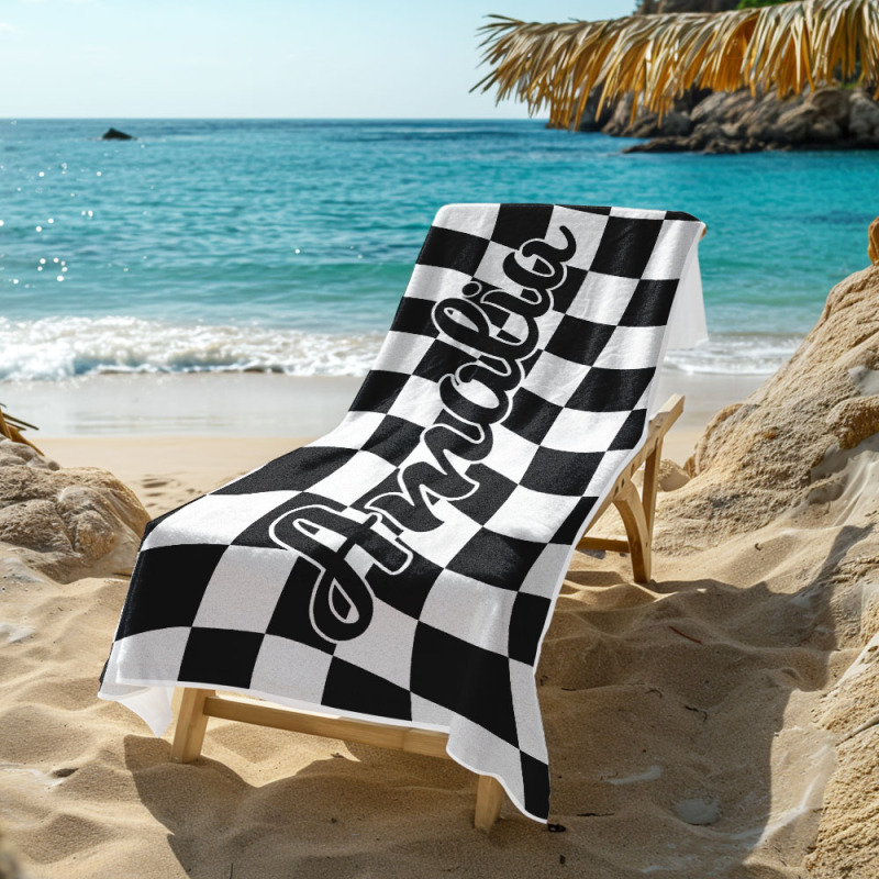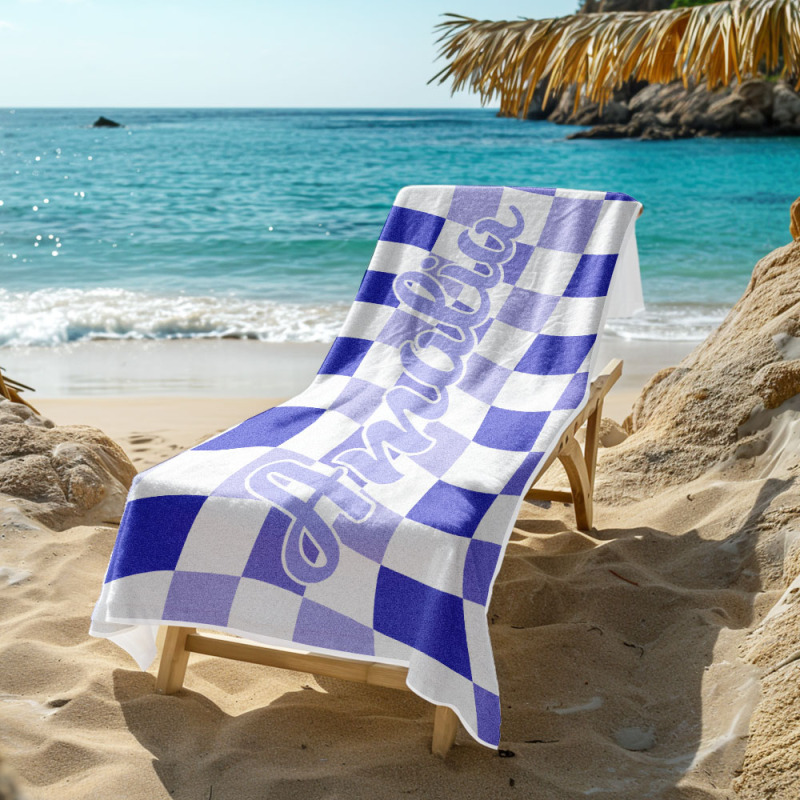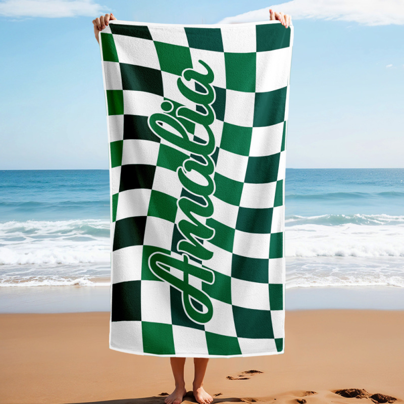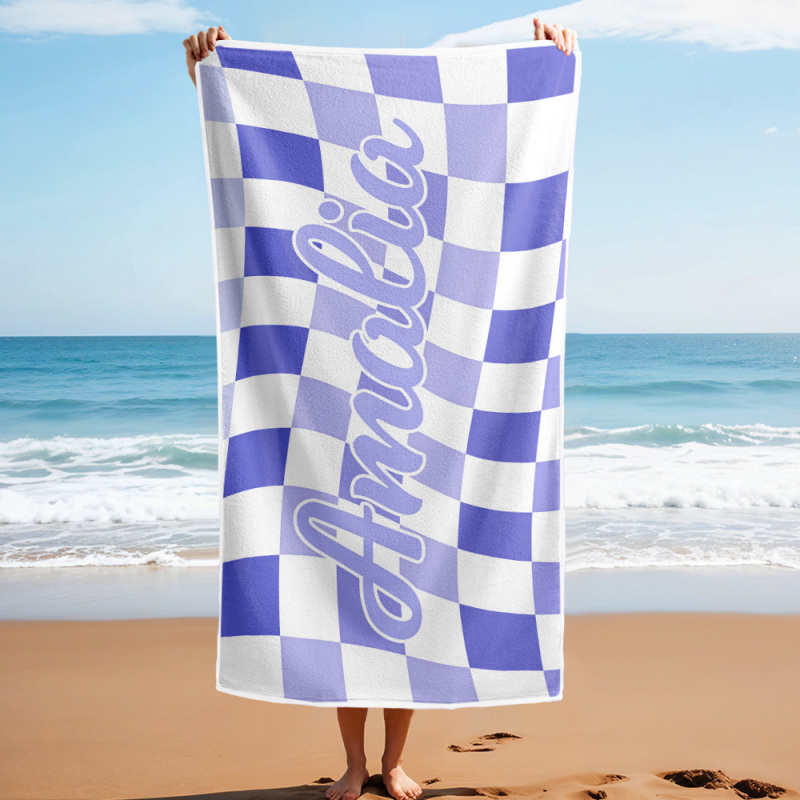 Toalla De Playa Personalizada Con Nombre Personalizado, Toalla De Baño A Cuadros, Regalo De Vacaciones De Verano