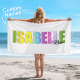 Toalla De Playa Personalizada Con Nombre De Arcoíris Y Monograma Multicolor Personalizado.