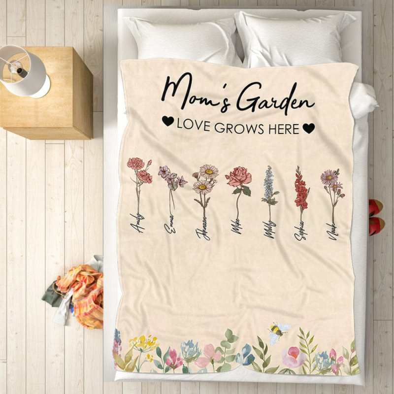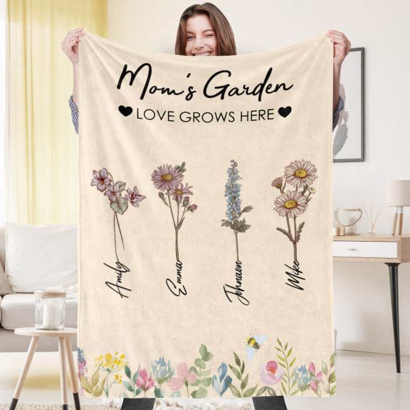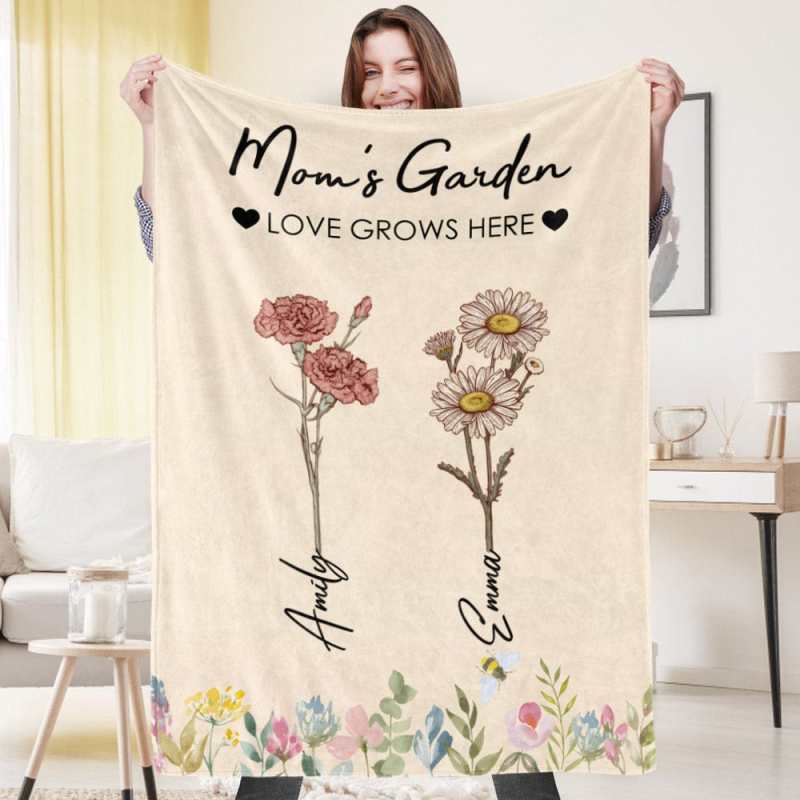 Manta De Flores De Cumpleaños Personalizada, Manta Con Nombre Personalizado, Regalo Para La Abuela