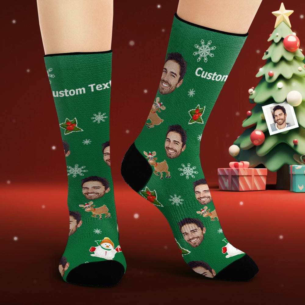 Calcetines Personalizados Con Cara, Calcetines Verdes Con Foto, Lindos Elementos Navideños, Regalos De Navidad
