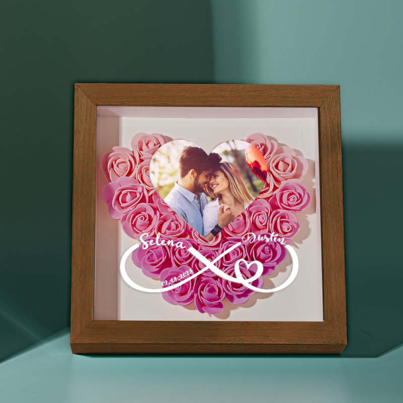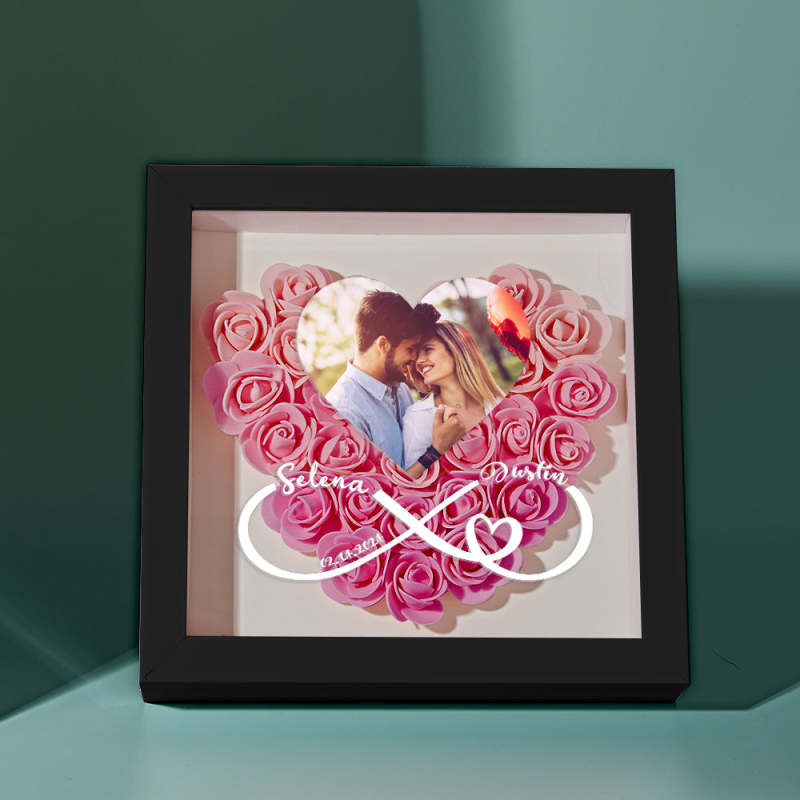 Caja De Sombras Con Forma De Corazón Y Flor Personalizada Con Foto, Regalo Romántico Para Pareja.