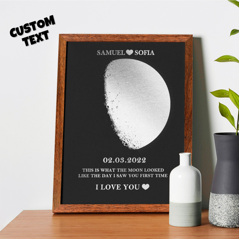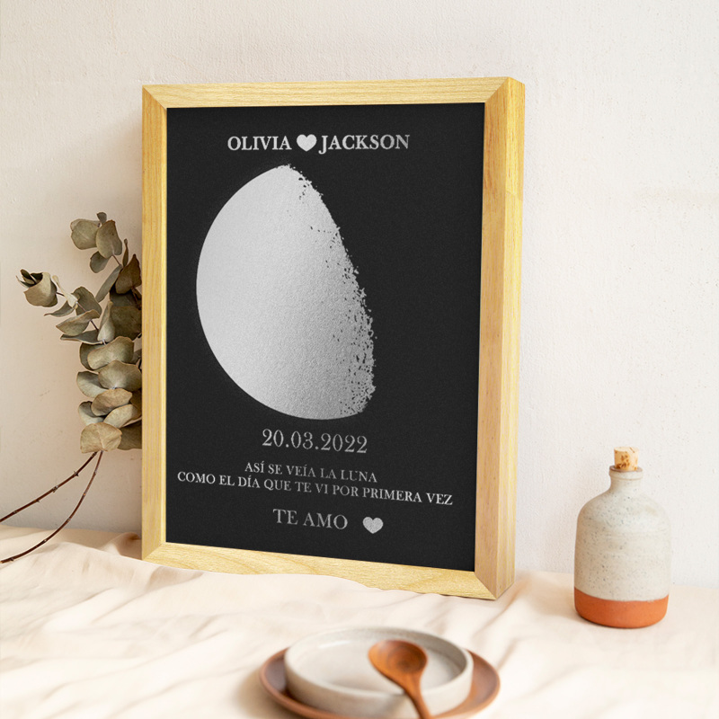 Marco De Madera Con Impresión De Fase Lunar Personalizada, Nombre Y Texto Personalizados, Regalo Familiar