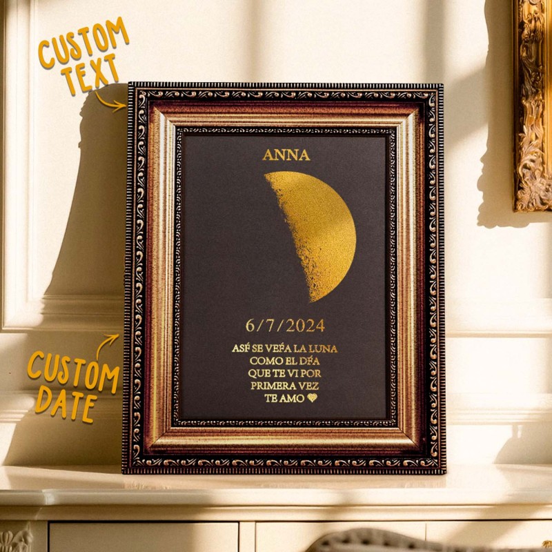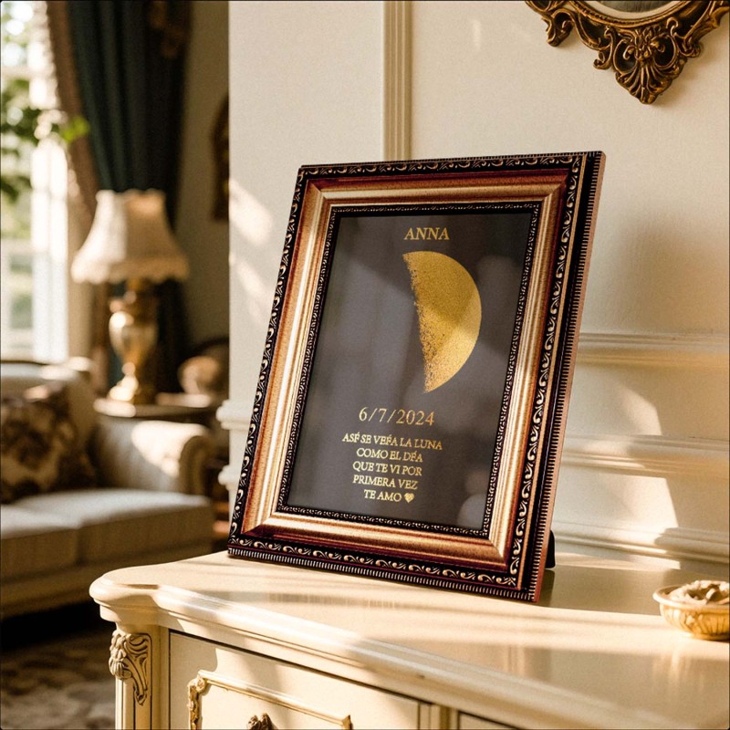 Marco De Madera Personalizado Con Fase Lunar Con Nombre Y Texto Personalizados. Regalo Para Ella.