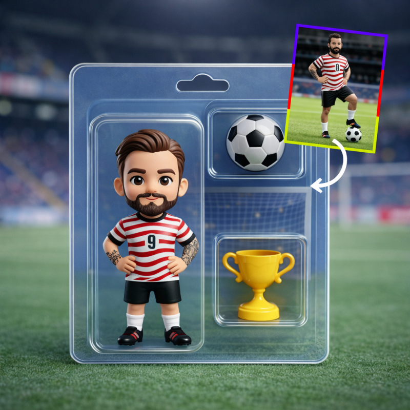 Set De Regalo Con Figura 3d Personalizada De Jugador De Fútbol, balón Y Trofeo Para Niños Y Aficionados. Día De Partido De Football Fever.