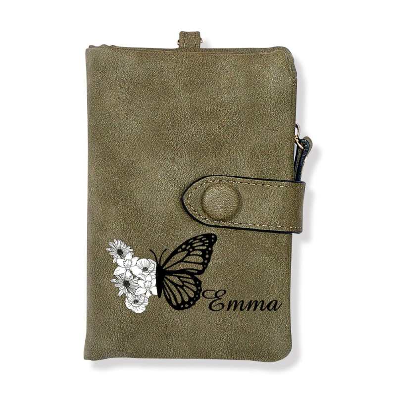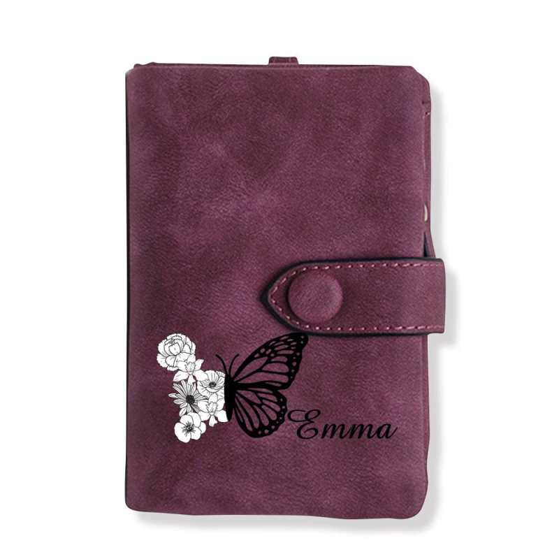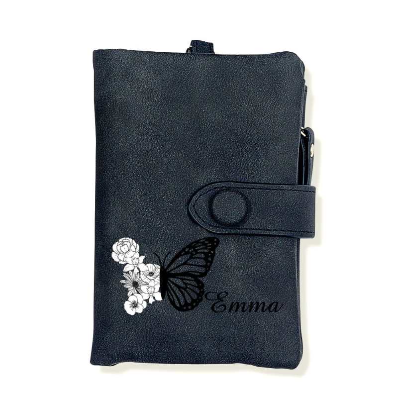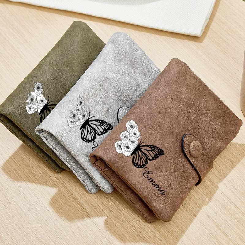 Cartera De Cuero Personalizada De Tres Pliegues Con Diseño De Mariposa Y Flor De Nacimiento, Con Monedero, Regalo Personalizado Para El Día De La Madre Para Mujer.