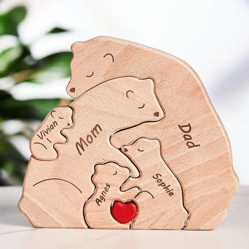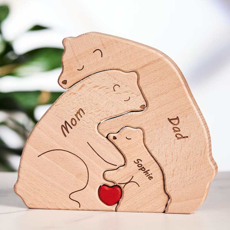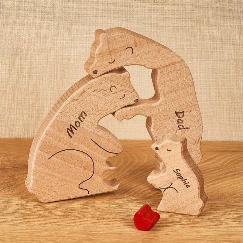 Regalos para el Día del Padre Bloques de Madera Personalizados con Nombres, Rompecabezas Familiar de Ositos, Decoración para el Hogar