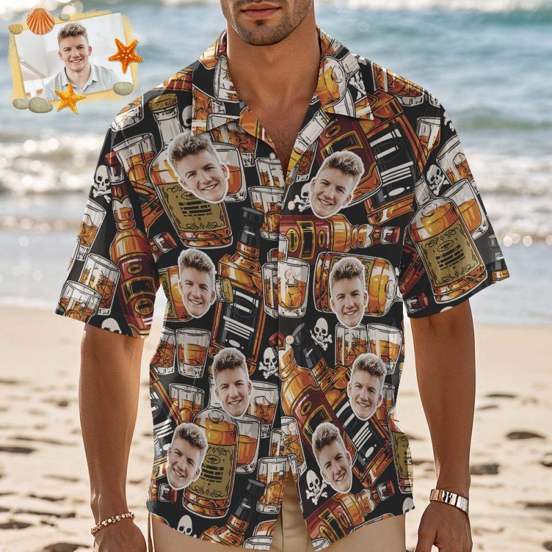 Camisa Hawaiana Con Cara Personalizada, Camisa Hawaiana Con Calavera De Whisky, Regalo Creativo Para El Día Del Padre