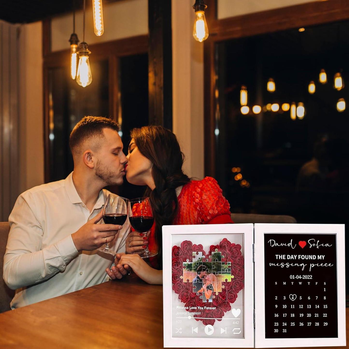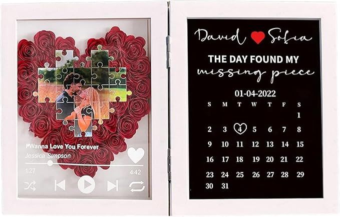 Marco De Canción De Flores Personalizado Con Pieza Faltante De Rompecabezas, Diseño De Calendario De Aniversario, Regalos Para Parejas Para San Valentín Y Bodas.